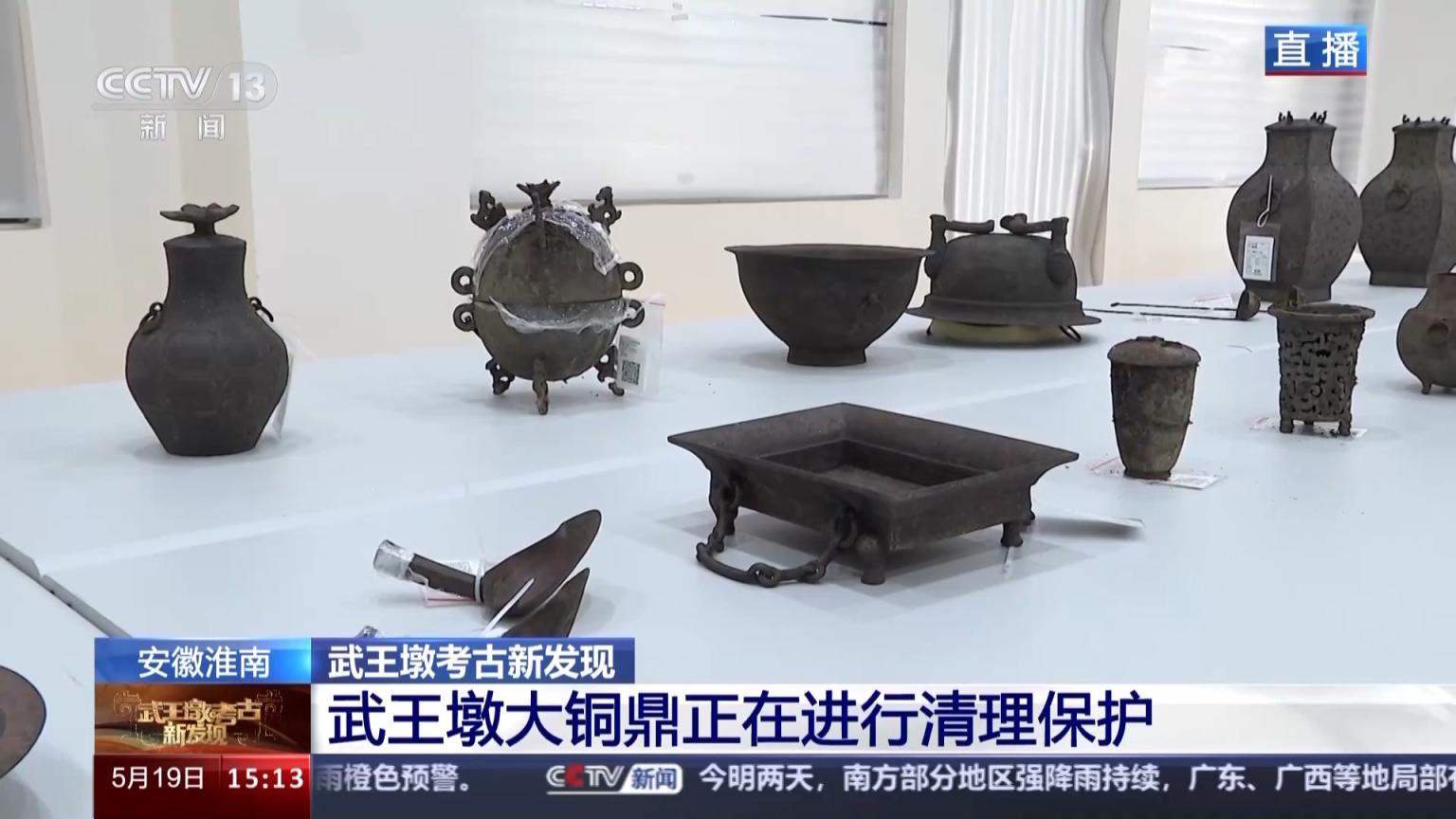 武王墩考古實(shí)驗(yàn)室負(fù)責(zé)人 張治國:武王墩出土的青銅器主要出土于東一室,還出土了各類其他銅器150多件/組,包括烹煮器、盛食器、盛酒器、盥洗器、挹注器等,類型非常豐富。