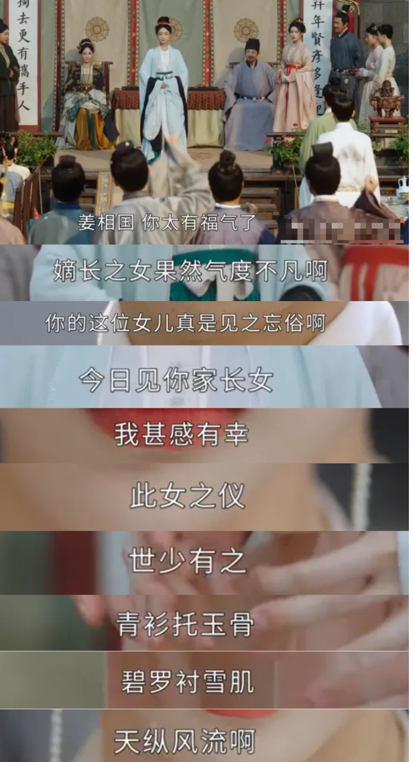 吳謹(jǐn)言往及笄典禮上一站,臺下的權(quán)貴們就像失心瘋一般奉承起來:此女之儀,世之少有,氣度不凡、見之忘俗、天縱風(fēng)流……還有人領(lǐng)掌打call。