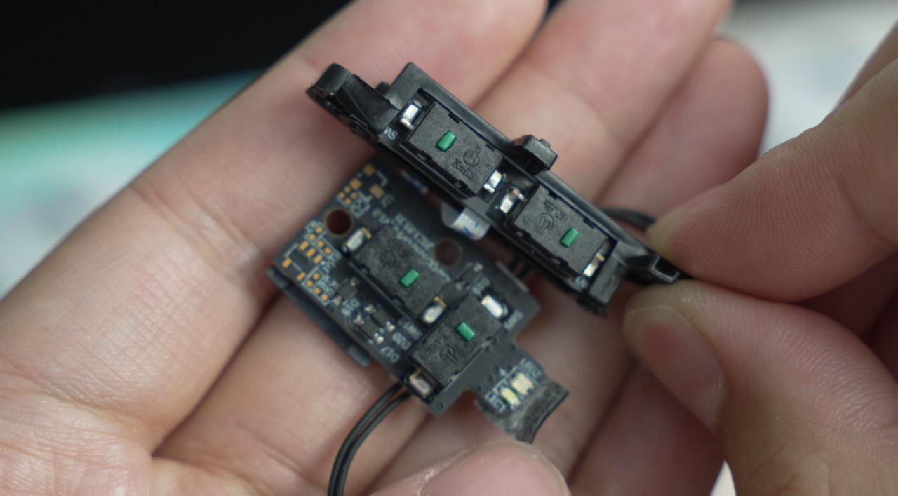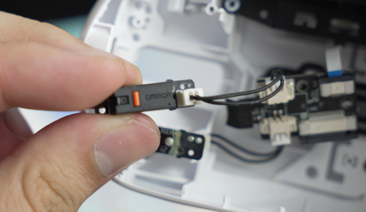 主鍵為分離式設(shè)計,通過導(dǎo)線連接到上半部分的副板上,這樣模塊化設(shè)計的好處是后續(xù)如果要更換微動的話非常容易,只需要把微動拔下來插上新微動即可。