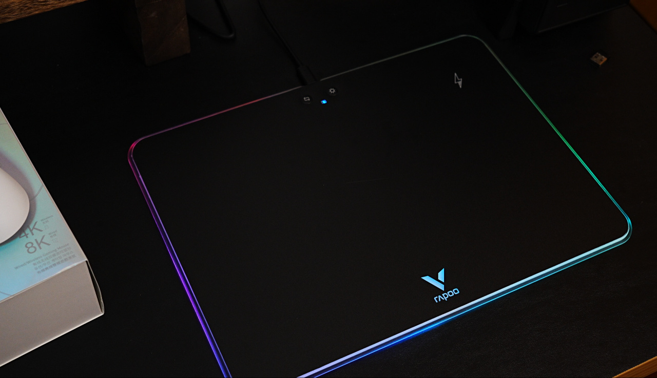 當(dāng)然,雷柏自家也有支持無線充電的RGB鼠標(biāo)墊配合剛剛的無線充電模塊,兩兩組合這一套可以當(dāng)成是羅技PowerPlay的一個平替選擇,但這個鼠標(biāo)墊的表面手感我不是很喜歡,這個看個人喜好吧。