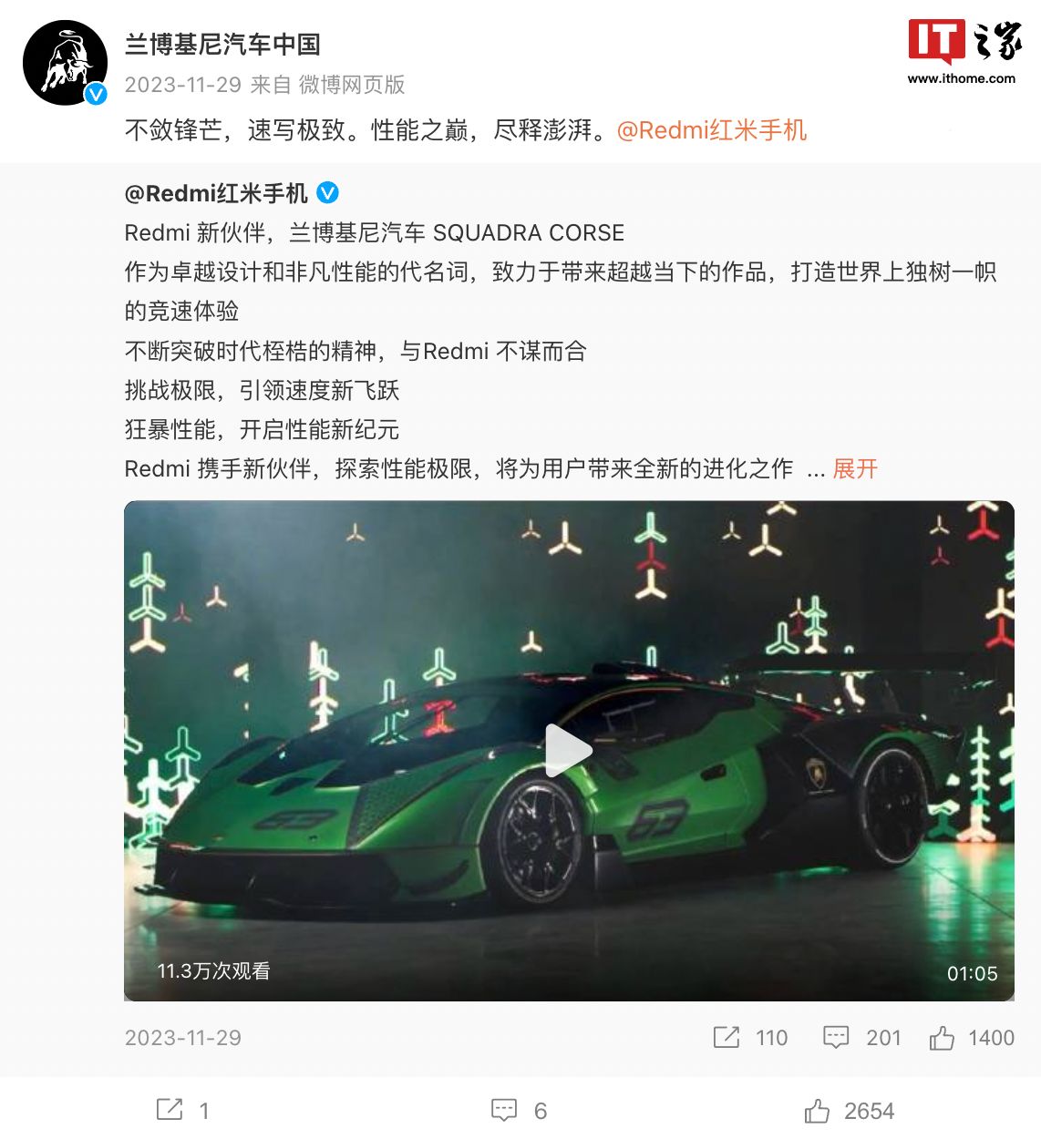 另外,消息K系型紅米官方今日和蘭博基尼汽車進行了微博互動,稱小測試K純官宣成為蘭博基尼 Squadra Corse 賽事運動部門的列手聯(lián)名贊助伙伴。