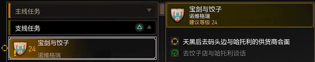 我們將主線劇情推到諾威格瑞后,打開(kāi)地圖,來(lái)到位于港派大門(mén)右上方不遠(yuǎn)處的鐵匠鋪,在這里領(lǐng)取名為“寶劍與餃子”的支線任務(wù)
