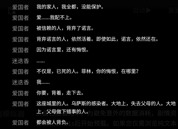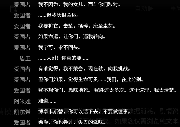 所以你就明白,愛國者的頑固和戰(zhàn)死,是一種必然。只不過這一次,不是命運或者是黑蛇決定了愛國者的死,而是愛國者希望為所有苦苦掙扎的感染者而死,他的死會讓羅德島更有名氣和力量,他的死會保護整合運動這個感染者在精神上獲取希望的旗幟,他已經盡可能保護整合運動不為黑蛇所污染。你也看到他盡量保存了所有麾下士兵的有生力量,在第八章中參與羅德島對塔露拉的作戰(zhàn)。