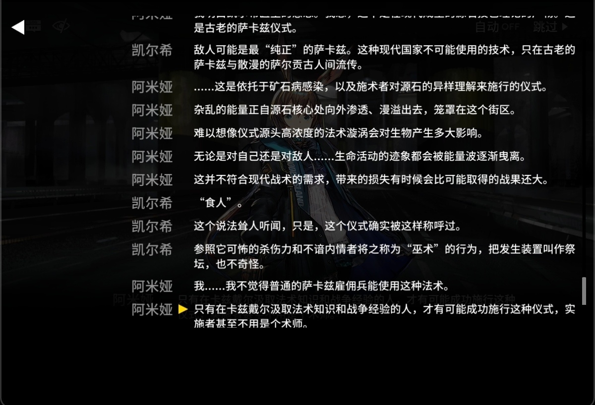 烏薩斯階段:在劇情《遺塵漫步》中交待,烏薩斯指派溫迪戈去征伐北方的邪魔,