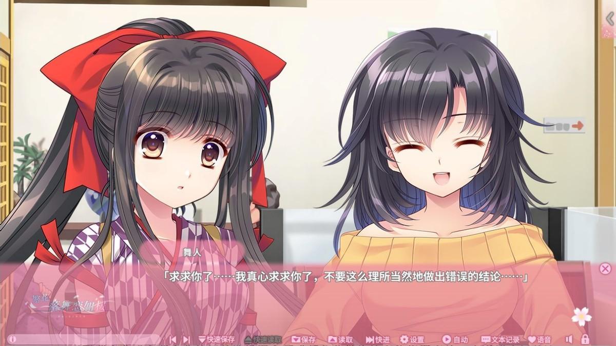 至于其他非女主的女性角色也描繪得相當(dāng)出彩,我尤其喜歡眼鏡娘結(jié)城光,可惜她并不是本作中的可攻略角色。至于男性角色就沒(méi)什么可說(shuō)的了,基友和某個(gè)紅發(fā)帥哥的戲份比較多,有外形的加持后至少不會(huì)讓玩家產(chǎn)生什么“這人一直出場(chǎng)很煩”的惡感就是了。UI方面采用了粉色的主體色調(diào),配合上櫻花主題的小裝飾,也在視覺(jué)上很舒服。總體來(lái)說(shuō),至少?gòu)拿佬g(shù)層面我對(duì)于《繁花落舞戀如櫻 -Re:BIRTH-》還是很滿意的,畢竟西又葵老師的功力擺在這兒。