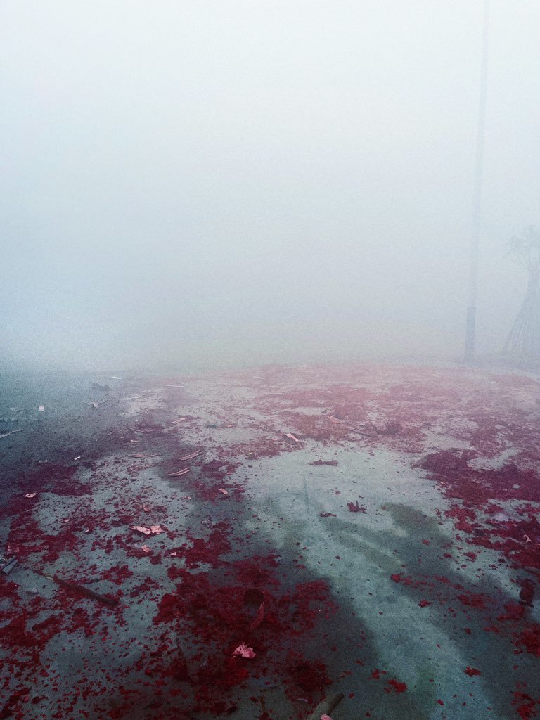 被霧氣籠罩的環(huán)境,好似聞到了潮濕的空氣和爆竹的味道