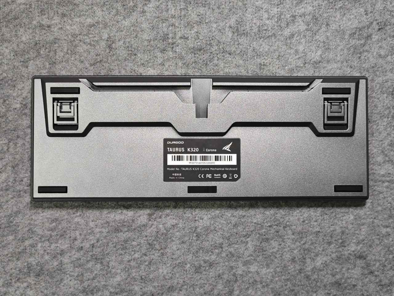 鍵盤背面非常有設(shè)計(jì)感,一共有5處防滑腳墊,并且上方位置有階梯式設(shè)計(jì),加高了一層,使得鍵盤平放之后是有一定幅度的,這樣能帶來更為舒適的打字體驗(yàn),當(dāng)然,鍵盤的兩段式防滑腳撐也能非常不錯(cuò)調(diào)整鍵盤到你認(rèn)為最舒服的高度。