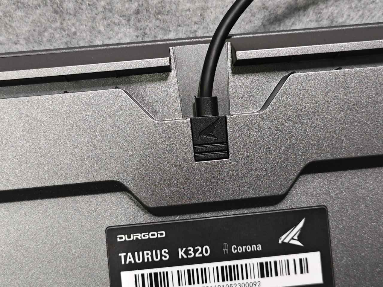居中位置是鍵盤的連線位置,他的接口做得比較深,并且線材的出口也是方形的,插上去之后能夠非常穩(wěn)固,不會(huì)有晃動(dòng)及掉的情況,當(dāng)然,這個(gè)接口設(shè)計(jì)也能使用其他的線材,我這邊幾條數(shù)據(jù)線都能完美適配這個(gè)接口。并且他還做了三向出線的線槽設(shè)計(jì),方便理線。