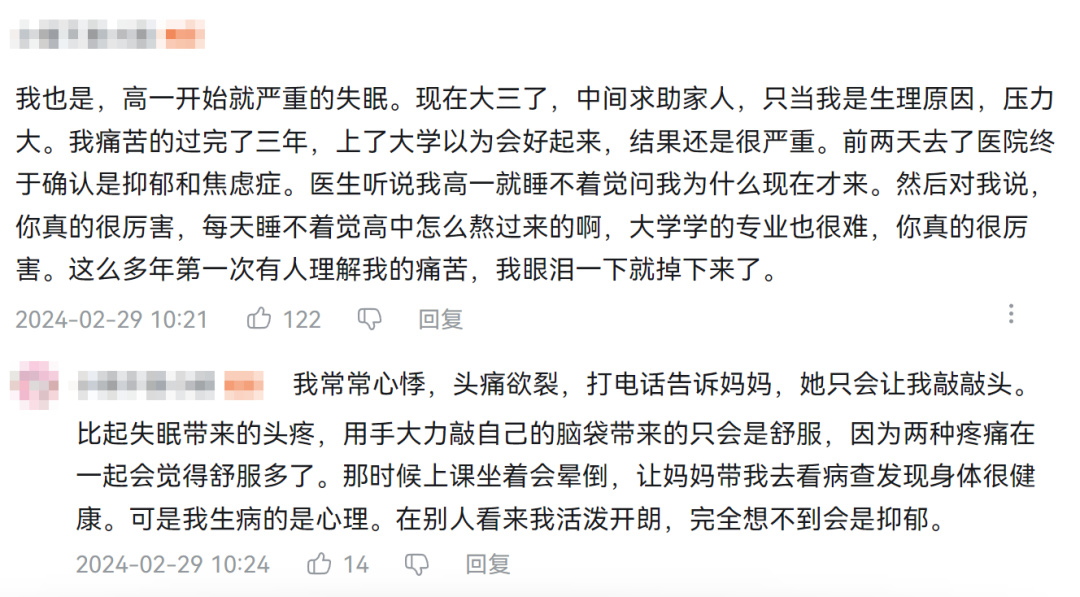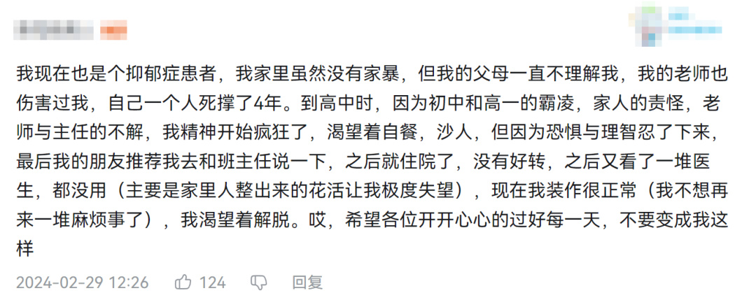 也能看到巨大的升學(xué)壓力導(dǎo)致青少年的身心困境: