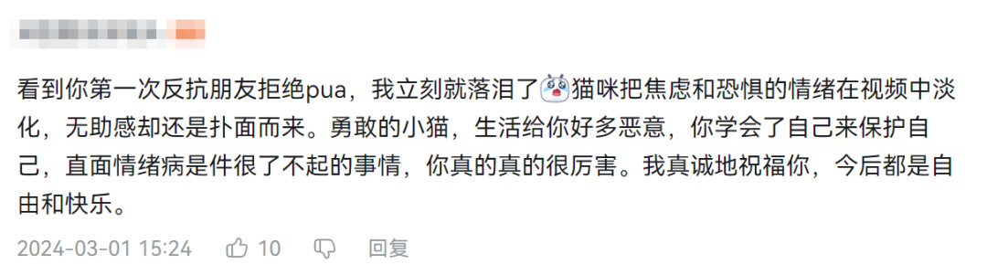 貓meme視頻本身也許不能切實地幫助up主解除當(dāng)下的困境,但至少ta們獲得了重新理解自身經(jīng)歷和情緒的機會,這將幫助ta們從自身的感受和需求出發(fā),勇敢地為自己做出選擇。