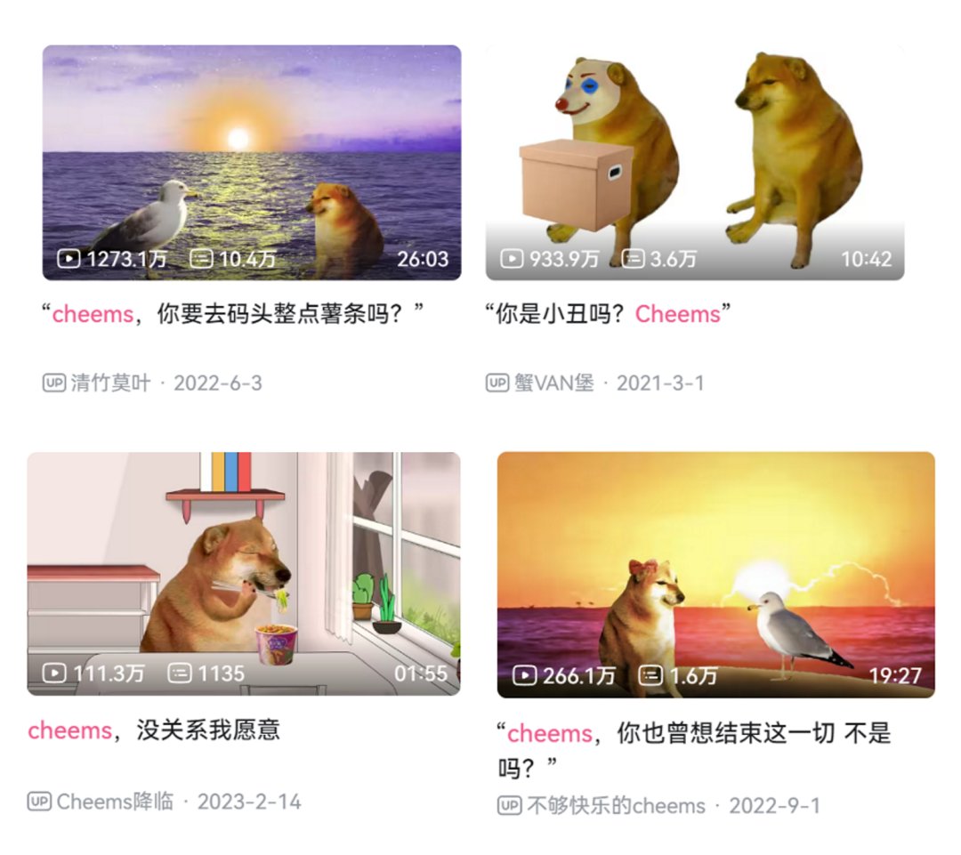 相比貓meme被用來講述自己的親身經(jīng)歷,cheems往往被用來講述up主虛構(gòu)的故事,即使視頻本身的基調(diào)偏向憂傷,但下方的評論,較之于貓meme,要更加積極樂觀,對未來更有希望,嘗試喚起宏大的敘事和群體的記憶。