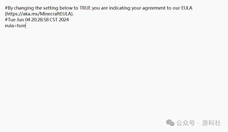 下載完成后,文件內(nèi)多出了許多文件,找到“eula.txt”的文件,將里面的“false”改為“true”