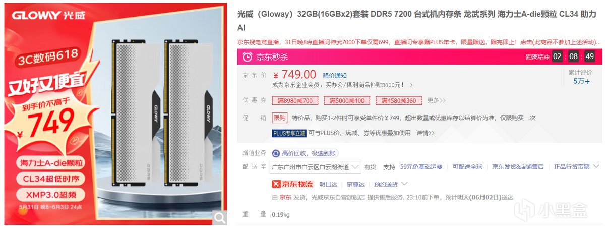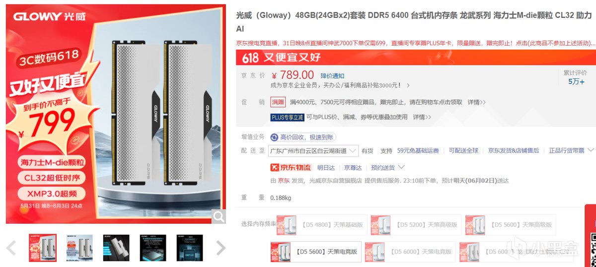 今年的起光起618活動(dòng)期間:光威的天策、龍武、威掀神武系列內(nèi)存從大容量,內(nèi)存高頻率,高端高顏值三大方向跟消費(fèi)者全面普及DDR5內(nèi)存,例如天策24GX2套條才賣599元,疊加優(yōu)惠券能做到550元左右,直接打個(gè)75折,昨晚都賣到斷貨了,為啥這么值得買?