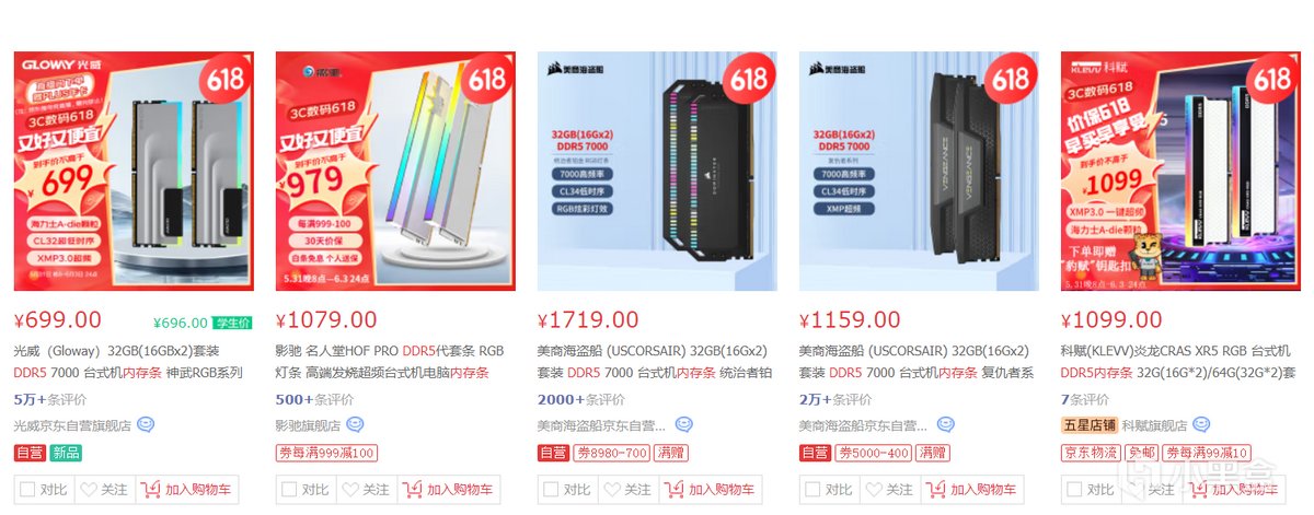 講到高端DDR5內(nèi)存,顏值高,頻率還能在7000Mhz以上的32G RGB燈條基本還維持在1000以上,光威的神武RGB燈條首先將DDR5 7000Mhz 32G套條的價(jià)格卷到了700以內(nèi)!這個(gè)套條也是這次618活動(dòng)村民最推薦的,699元能同時(shí)滿足村民的三大要求(高頻率、大容量、高顏值),是真真正正的高端普惠款!