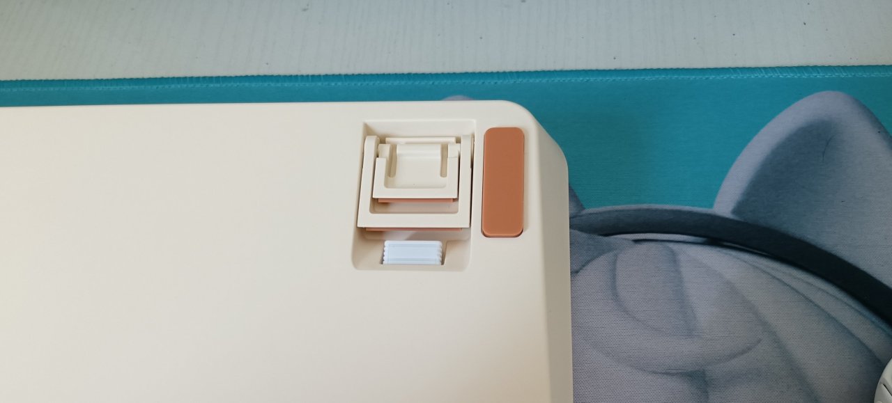 在鍵盤的背面是五個(gè)小腳貼和雙段腳撐,另外磁吸收納倉就在右腳撐的下方,拿去都非常方便。