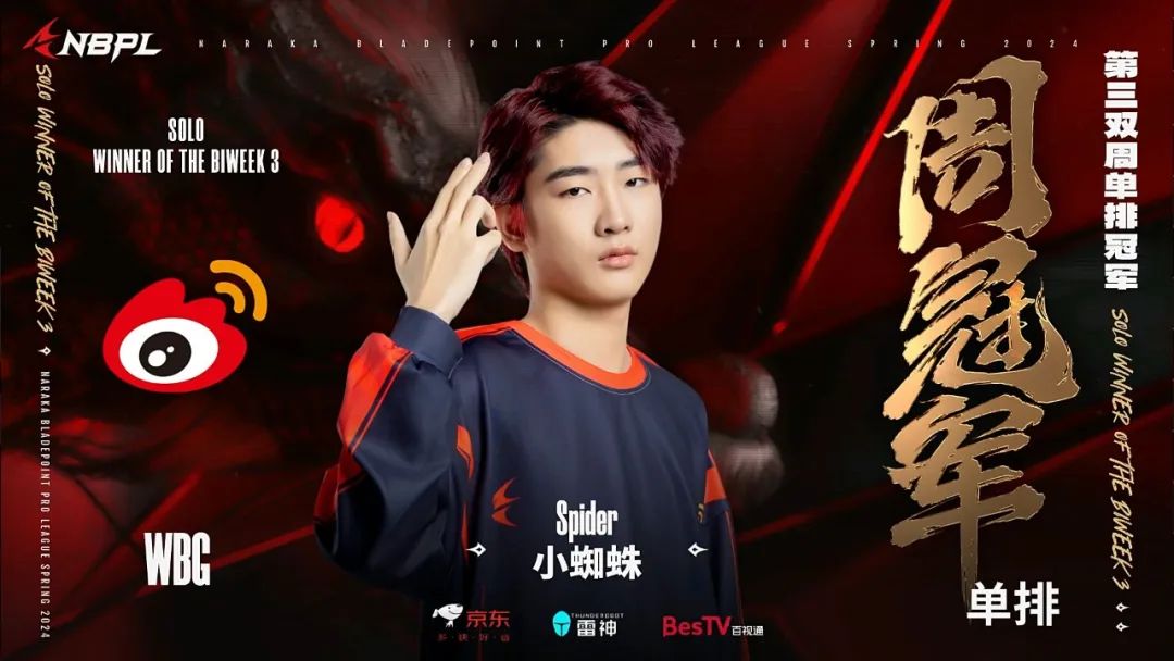 但冠軍最終只有一位。當初首個拿到單排大滿貫的WBG.Spider(小蜘蛛),卻從“天才少年”變?yōu)榱恕疤觳疟尘鞍濉?。不僅無緣2023NBPL聯(lián)賽冠軍,與劫杯冠軍也是擦肩而過。從此,WBG.Spider(小蜘蛛)被冠上了“常規(guī)賽戰(zhàn)神”的稱號。