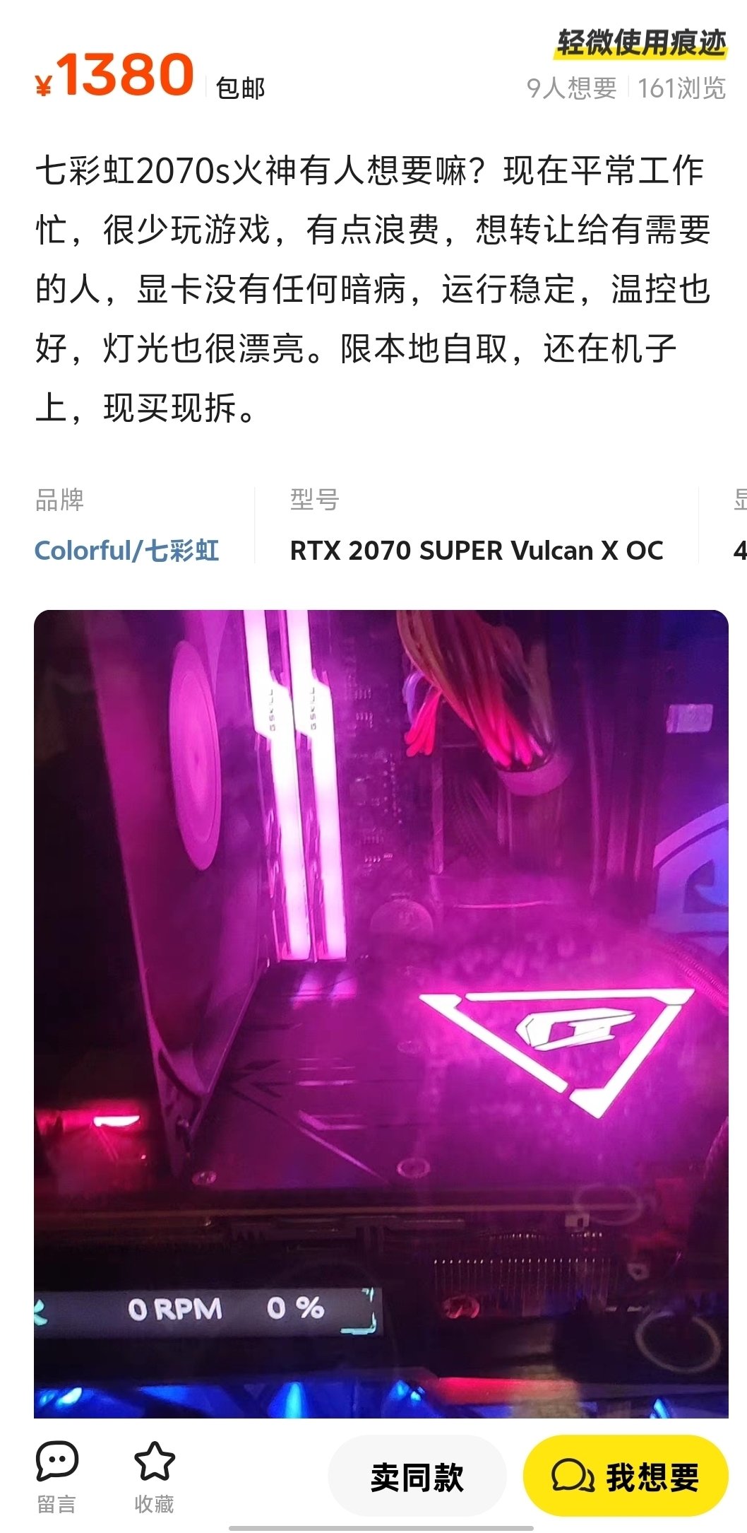 那么2060和2060s中我更推薦2060s,它是20系里面提升最大的super,差價(jià)和2060不算大,但性能基本和3060五五開,1k暢玩,2k入門。老黃幾乎是把2070改了個(gè)名字換了個(gè)皮交給了你,性價(jià)比真的拉滿,所以突出的性能也讓它目前略有溢價(jià),黃魚價(jià)格1100左右,和1080ti價(jià)格持平,雖然性能不如1080ti,但勝在年份更久功耗更低,認(rèn)真淘還是有不少成色相對不錯(cuò)的幸存者。